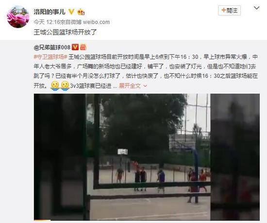 该事件的第一爆料人小程在微博上写道:“王城公园篮球场目前开放时间是早上6点到下午16点半,早上球市异常火爆,中年人老大爷居多。”