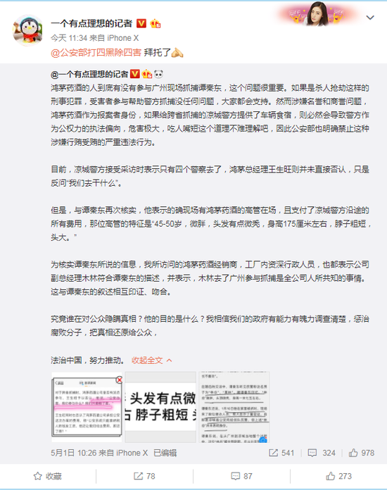 鸿茅药酒的人到底有没有参与广州现场抓捕谭秦东,这个问题很重要。如果是杀人抢劫这样的刑事犯罪,受害者参与帮助警方抓捕没任何问题,大家都会支持。然而涉嫌名誉和商誉问题,鸿茅药酒作为报案者身份,如果给跨省抓捕的凉城警方提供了车辆食宿,则必然会导致警方作为公权力的执法偏向,危害极大,吃人嘴短这个道理不难理解吧,因此公安部也明确禁止这种涉嫌行贿受贿的严重违法行为。