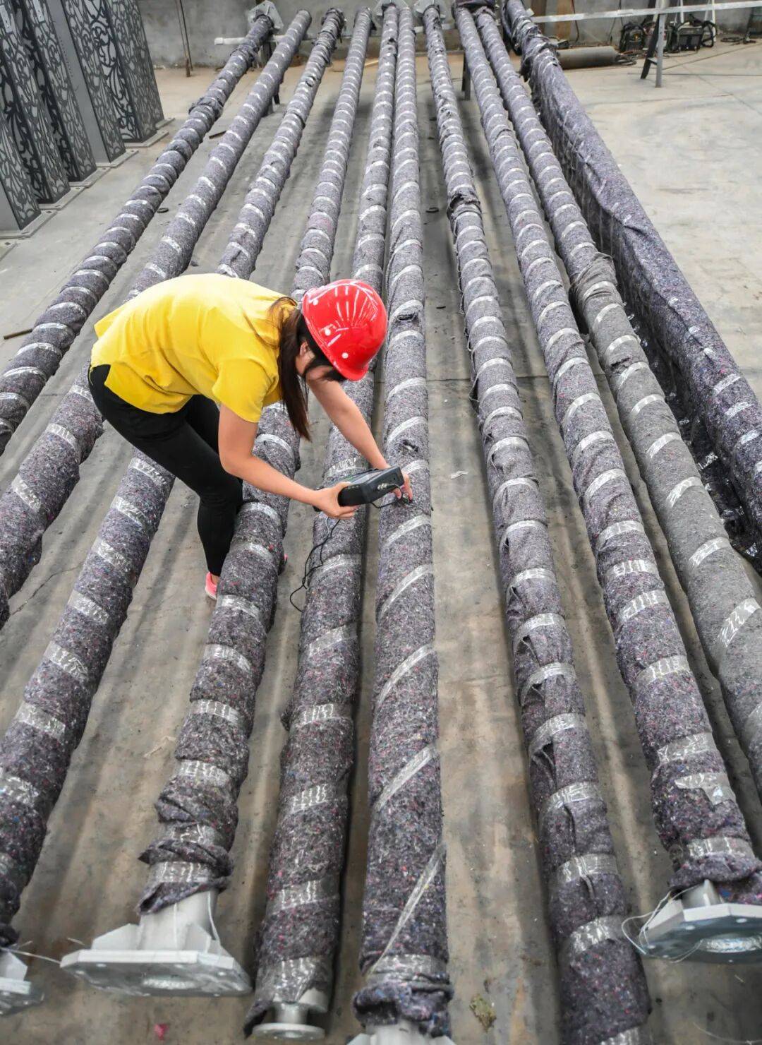 质检人员在对智慧灯杆杆体进行质量检查 李晓果 摄