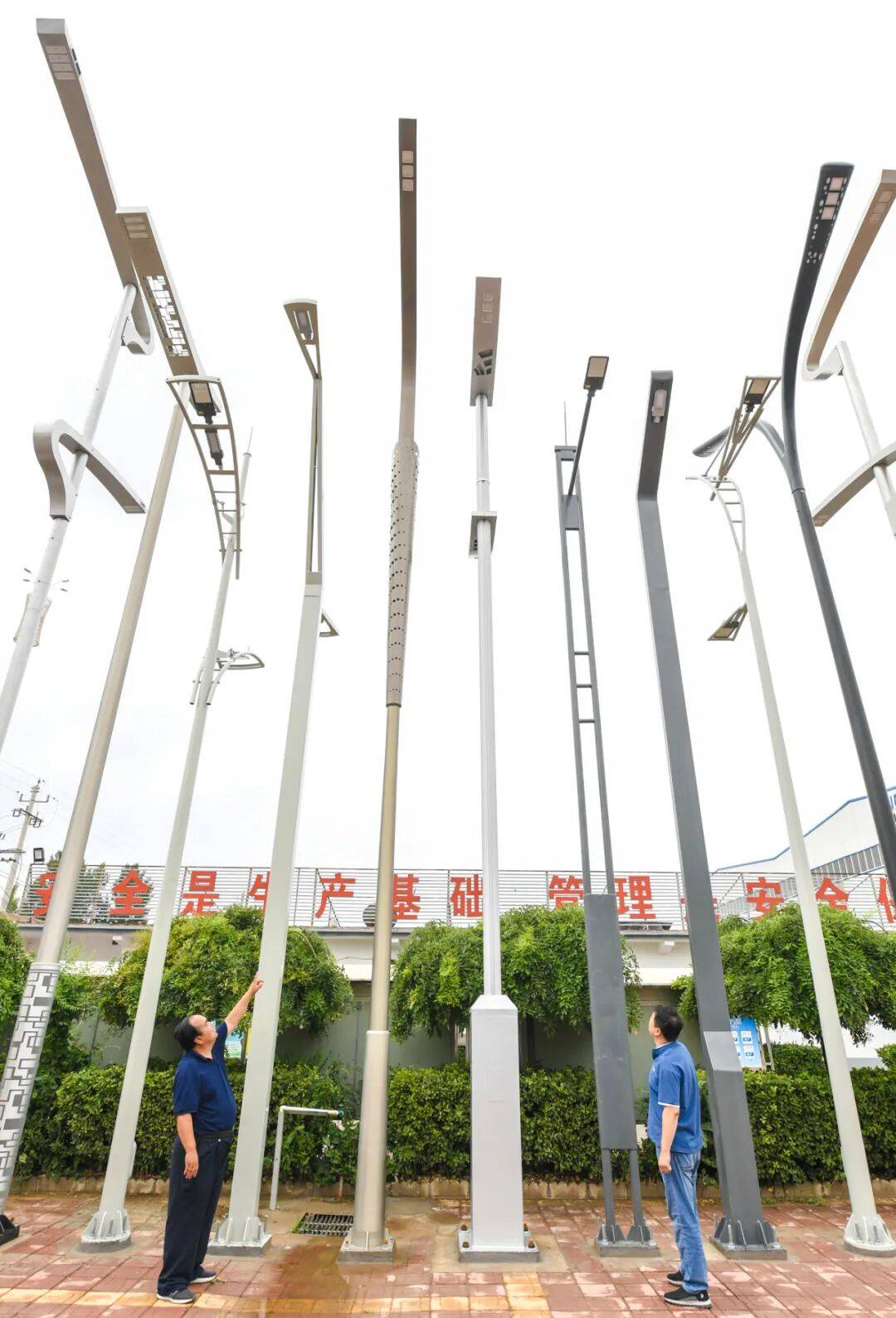 客户在一家企业挑选智慧灯杆杆体样式 李晓果 摄