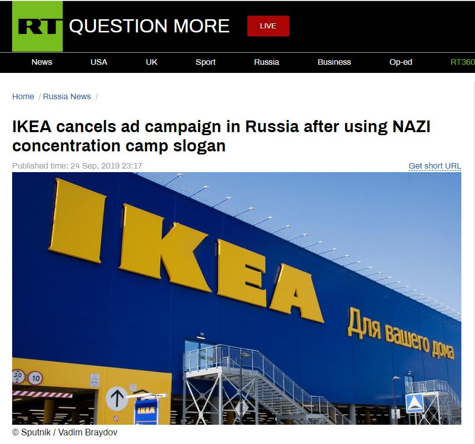 宜家又出事了。据“今日俄罗斯”(RT)24日报道,瑞典家具量贩店宜家在俄罗斯的一场宣传活动中打出了一则带有纳粹性质的标语,引起了俄罗斯公众的批评。最后,宜家道歉了。 今日俄罗斯报道截图 报道称,宜家出事的这条标语是“suum cuique”,在拉丁语中意为“各得其所应得”。RT解释称,这句话因曾被纳粹分子译为德语版,并写在了德国魏玛布痕瓦尔德集中营入口处而出名。二战期间,超过5.6人死在了这个集中营内。 德国魏玛布痕瓦尔德集中营入口处,“suum cuique”被翻译称德文“Jedem das Seine” 图源:今日俄罗斯 众多俄罗斯人因此怒了,其中包括俄罗斯议员维塔利·米洛诺夫。他表示,“我们必须敦促宜家有所行动,放弃此条标语”。 宜家迅速对此道歉,并在一份声明中“承认错误”,表示对历史“非常尊重”。 报道还提到,宜家并不是首个因为这条标语而陷入麻烦的大品牌。2009年,石油公司埃克森美孚(ExxonMobil)与咖啡分销商智宝(Tchibo)曾在德国使用这条标语,劝说司机在加油站停下来买杯咖啡,被犹太群体强烈反对。汉堡王、诺基亚以及俄罗斯电信巨头Beeline早年也被要求在宣传广告中撤下这条标语。RT称,在大多数情况下,涉事公司都表示他们没有意识到该标语与纳粹有关。 |