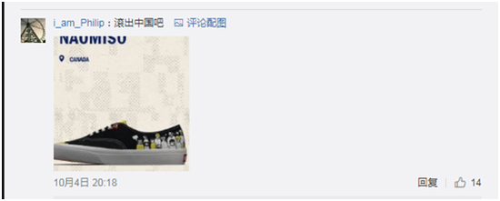 图源:香港《南华早报》 虽然简介为“威富服饰(中国)有限公司”的@VansChina 微博账号并未发布与此相关的信息,但从4日起,就有不少网友该微博账号下留言,要求范斯(Vans)公司对该鞋款问题进行说明。↓
