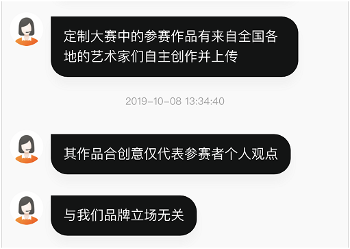 Vans中国(Vans China)官网客服回复截图 Vans中国(Vans China)助理公关经理对环球时报-环球网记者表示,该大赛是首次在全球范围内进行,中国区目前已经活动结束。她表示,比赛设有审核机制,选手上传作品后,Vans各地区的市场人员将对其进行审核工作,其中包括自动识图和人工审核。随后,这些作品将在官方界面展示出来。 对这件事,你怎么看?  |
