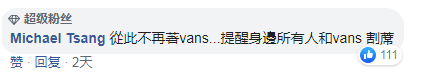 Vans脸书截图 该声明随即在社交媒体上招致香港反对派的谴责。 在这则声明下方的评论区,有香港反对派网民嚷着要与范斯(Vans)“割席”,甚至表示要搞“烧鞋比赛”。↓