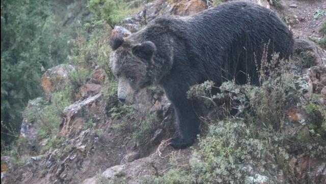 最令他们惊喜的就是看到了藏棕熊。据介绍,西藏棕熊亦称藏蓝熊,是世界上最稀有的熊亚种之一,也被称为藏棕熊、马熊、喜马拉雅蓝熊、喜马拉雅雪熊和山熊。1854年由英国动物学家艾德华·布莱首次分类。分布于中国(西部、西藏东部)、尼泊尔的高山地区,在不丹也有但很少见。被列入《华盛顿公约》CITES 附录Ⅱ级保护动物,中国二级重点保护动物。