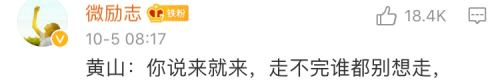 “我后悔了!我不想出来玩了,我想回家!!!” 游客崩溃的呐喊,在山谷间回荡,又是一年“黄金周”,眼熟的一幕再次在安徽黄山风景区上演。 据@星视频 10月4日报道,日前,有游客趁着国庆、中秋双节小长假赴安徽黄山景区游玩,穿着雨衣的她爬到一半,听到其他游客的大喊,在大风大雨的“洗礼”下心生退意,但她一抬头,是看不见尽头的队伍,一回头,又是看不见尽头的队伍…… 视频中,黄山曲折的山道上布满了密密麻麻的游客,五颜六色的雨衣在风中摇晃,冷冷的风雨在游客脸上胡乱地拍,有人忍不住大喊道:“我后悔了!我不想出来玩了,我想回家。” 听到这声呼喊,再抬头前方看着无尽的山道,拍视频的游客也心生退意。 然而镜头一转,来的路,去的路,都是看不到尽头的雨衣客,实在“进退两难”。 大家只好在风雨中互相搀扶,摇摇晃晃地“含泪”走完全程。 网友见此,诗兴大发:有道是,五岳归来不看山,黄山归来“不看人”。前后左右再一看,五颜六色塑料布。 “躺着说话不腰疼”的宅家网友也发来贺电:我就静静地看着你们人挤人。 据梨视频10月5日报道,事后游客接受采访时称,拍摄的画面是去往迎客松方向的路段,因为山道比较窄,双向单人通行,一边上一边下,所以会出现比较拥挤的情况,其他路段没有那么夸张,特别是平地,人流不大。 对此,黄山风景区旅客咨询服务热线工作人员5日也回应称,由于疫情期间景区限流,堵在路上一动不动的情况一般不会发生,拥挤的情况也只在热门路线出现,从10月1日至今,景区游客还未达到过每日接待量上限:3.75万人。 其实,为了控制高峰期人流,黄山风景区10月2日向新华网透露,今年“十一”黄金周的游客日接待量会控制在3.75万人以内,即不超过核定最大日承载量的75%。 其中,景区南大门每小时最大预约量为5000人,景区北大门每小时最大预约量为400人。 同时,门票实行至少提前1天、最多提前7天线上分时预约购票,且不支持线下购票。享受免票政策的游客也需要分时预约,购买零元票。 根据黄山风景区要求,游客须出示预约成功信息或信息所匹配的身份证,通过健康码核验、体温检测合格后方可进入景区。 此外,为了应对疫情防控工作,黄山风景区西大门实行只出不进管理。天都峰继续关闭轮休,莲花峰对外开放。 不过,游客的热情是挡不住的,假期已经过半,大家都去哪里打卡了? 来源|观察者网风闻社区 |