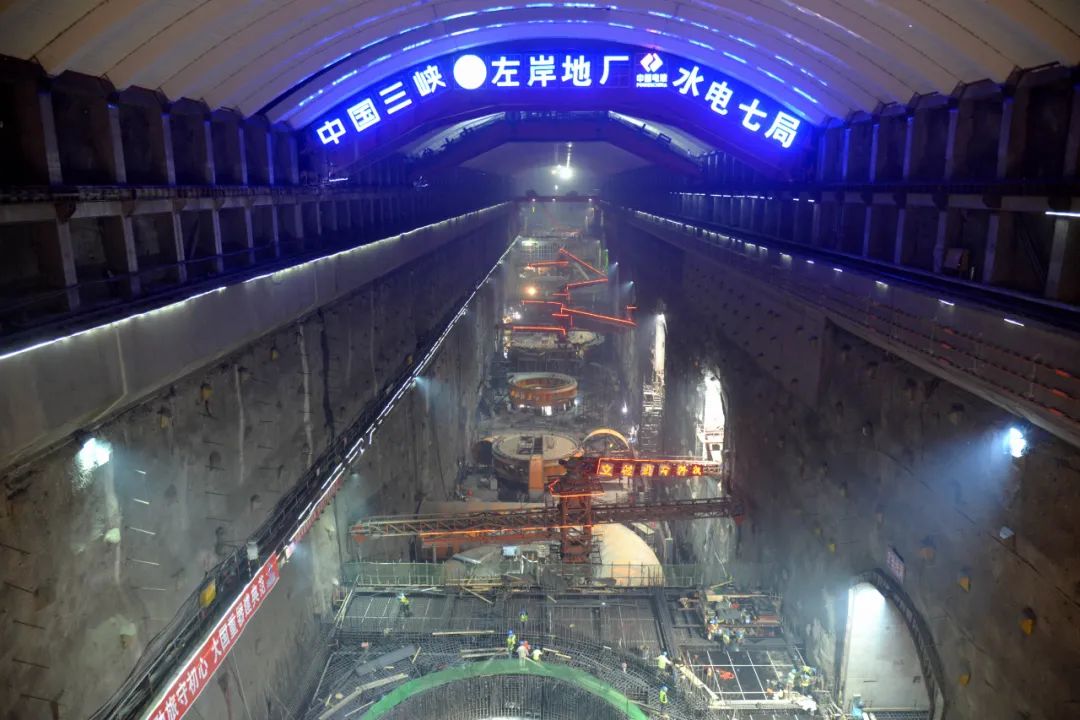 电站左右岸地下厂房分别位于两岸山体内,均为目前世界最大的地下厂房,各布置8台百万千瓦机组。其中,此次全线封顶的左岸地下厂房长453米、宽34米、高88.7米,相当于1.5个国家体育馆“水立方”大小。