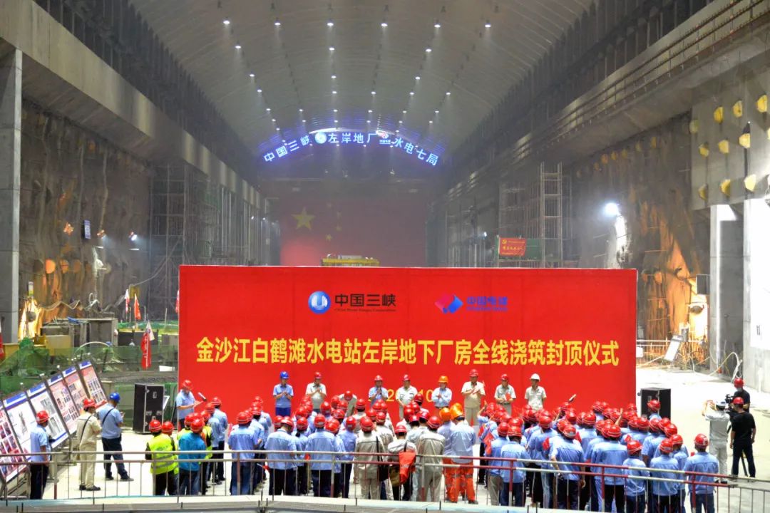 10月5日,由 中国电建所属水电七局承建的白鹤滩水电站左岸地下厂房6号机组封顶仓顺利浇筑完成。左岸地下厂房的全线封顶 标志着我国掌握了巨型地下厂房设计、建设和安全运行关键技术。之后将全面转入机组安装阶段,冲刺按期投产发电目标。