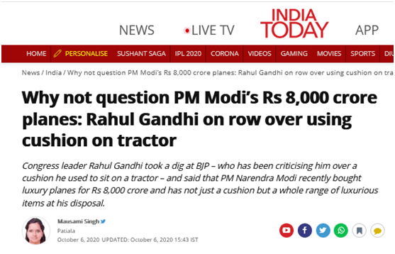 因为参加拖拉机集会抗议带着“坐垫”被执政党(即印度人民党)政客炮轰“抗议式旅游”,印在野党领导人不干了。当地时间6日,印度国大党领导人拉胡尔·甘地炮轰莫迪称,总理最近砸重金买下豪华飞机,可不仅仅只有一个坐垫,“还有着许多豪华床来为他的舒适服务”。同日他还借中印边境紧张抨击莫迪,并叫嚣,如果国大党执政,印度安全部队会在15分钟内将中国从边境击退100公里。 据《今日印度》6日报道,拉胡尔此前在旁遮普邦参加反对政府农业法案的拖拉机抗议活动期间,曾使用坐垫坐在一辆拖拉机上,而这引来了印人党政客的批评。莫迪政府的民航部长普里称,“国大党发起的‘抗议’是一场政治性抗议,参加的都是那些既得利益被农业法案伤害的人。可坐上拖拉机上的坐垫沙发并不是一种抗议,这是‘抗议式旅游’……” 面对执政党的批评,当地时间6日拉胡尔打趣说,总理新的“印度航空一号”飞机,可花了纳税人的钱超过800亿卢比,“这可不仅仅只有一个坐垫,还有着许多豪华床来为他的舒适服务”。 当天在参加反对农业法案的抗议活动前,拉胡尔被媒体问到参加抗议带着坐垫一事,拉胡尔反问媒体,“你们为什么不问问他们这个问题呢?”拉胡尔抨击莫迪仅仅因为他的朋友特朗普有一架,然后就在VVIP专机上浪费了数百亿卢比。 《今日印度》介绍,近日一架为印度总统、副总统、总理定制的B777飞机从美国抵达德里,该飞机的正式呼号是“印度航空一号”,而另一架同等规格的飞机预计也将在不久后交付。两架B777飞机将作为VVIP的专机使用,耗资超过840亿卢比。 一段时间以来中印边境紧张持续,6日当天,拉胡尔还用中印边境问题炮轰莫迪是“懦夫总理”,并扬言如果国大党执政,印度安全部队会在15分钟内将中国从边境击退100公里。 针对甘地表态,复旦大学南亚研究中心副主任林民旺7日表示,甘地这番表态不太具有实际意义,更多地是出于政治斗争的考量。甘地所在的国大党是印度在野党。不在其位,不谋其政。甘地并不需要去解决任何实际问题,因此发言可以无限“示强”。反观莫迪,任何表态都可能产生国际影响,因此其表态会相对谨慎。 林民旺进一步表示,可以说,甘地这番话将了莫迪一军。莫迪一直以强硬著称,擅长打民族主义牌。在印度政坛,对中国示强很容易“得分”。因此,甘地借此反将一军,实则还是出于党派政治的考量。 林民旺介绍说,从历史上看,这种表态在印度很常见。2013年国大党执政期间,作为在野党领袖的莫迪表态也十分强硬,他也经常发表些“示强”言论。印度政治的特点本身就是“闹哄哄”的,因此这类发言不具有太强的政治意味。从中国的角度来说,我们不用太当回事。 针对中印边境对峙,中国外交部此前已多次表示,近期中印边境事态的责任不在中方,是印方违反双方协议协定和重要共识在先,非法越线挑衅在先,单方面改变边境地区现状在先,鸣枪威胁中方边防部队安全在先。中国外交部发言人汪文斌9月底曾强调,根据中印双方近期达成的共识,任何一方都不应在边境地区采取任何导致局势扩大化的行动,以避免影响双方为缓和局势所做的努力。 【环球网报道记者 李东尧 侯佳欣】 |