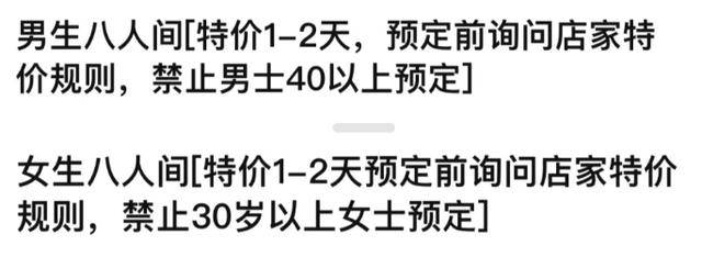 近日,有一网友发现,成都有青年旅舍禁止40岁以上男性、30岁以上女性预定特价房间,引发其他网友的热议。 网络截图。 10月13日,潇湘晨报记者在酒店预定平台发现,有三家青旅开出了4元特价房,“特价1-2天,预定前询问店家特价规则,禁止男士40以上/女士30以上/35以上预定。”记者联系这三家青旅,工作人员告诉记者,房间是特价房,不过需要客人帮他们冲销量、写好评、下载app,以及交三十块钱押金,“操作流程有点麻烦,要十几二十分钟”。 工作人员说,特价房限制年龄,是因为之前有一些客人不理解规则,和店员吵架还报警,“年龄限制是老板定的,也是为了减少麻烦,我们也是怕了,那些人报警我们也没办法,所以才这样,我们也有权利不去接待什么样的人。” 工作人员说,按原价订房就不限制年龄,原价也就二十多元,如果客人好说话能接受规则,年龄也没问题。平时入住青旅的客人很少超过三十岁,他们作息和年轻人不一样,住进来会影响休息。 |