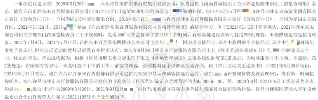 近日,记者从中国裁判文书网获悉,许昌市胖东来百货服饰有限公司(下称“百货服饰公司”)一员工因“未按照规定首先接待顾客”,被公司认定为严重违纪并解除劳动合同。该员工随后提起诉讼,河南省许昌市两级法院审理后均认定公司解除合同合法,驳回了其赔偿请求。 法院审理查明,事发时,员工刘霞(化名)正在盒裤袜子营业区工作。公司提供的视频显示,当一名顾客正在挑选内衣裤商品时,刘霞手持POS机整理货物,并未第一时间上前接待。而判决书同时提到,公司一份名为《迎宾前工作流程》的文件显示,点货理货的时间为上午9:00至9:30。 基于上述行为,百货服饰公司于2021年8月29日向刘霞出具《终止劳动关系通知书》。公司引用的依据是其内部《各项管理制度》,该制度规定,“在顾客有需求时,未及时放下手中的工作上前接待顾客”属于服务违纪行为,经调查属实可视为“严重违反公司的规章制度”,并据此解除劳动合同。 一审及二审法院均认为,百货服饰公司的规章制度制定程序合法,内容不违反法律规定,且刘霞曾参加该规章制度的培训并签字确认。因此,法院认定其行为违反了制度,公司据此解除劳动合同“合法、合理”,不属于违法解除,并驳回了刘霞主张的经济补偿金及赔偿金请求。 判决书显示,刘霞自2009年3月起入职胖东来关联公司,至被解雇时已工作超过12年。法院最终判决:确认双方劳动关系于2021年8月29日解除,公司需为其出具解除劳动合同的证明;驳回刘霞的其他诉讼请求。该判决为终审判决。 当晚,该条新闻登上微博热搜,有网友认为开除有点过了,也有人表示支持:“可以开除,按照法律法规赔偿离职工资就可以”。 根据《胖东来服务管理办法》,公司对售前、售中、售后服务均有明确标准。售前服务:员工需着装整洁、佩戴工牌,主动热情迎接顾客,熟悉商品知识,提供专业建议。售中服务:交易过程需快速准确,提供多种支付方式,根据商品特点进行包装。售后服务:严格遵守退换货政策,建立维修记录和跟踪机制,设立专门投诉渠道。 据其官网介绍,许昌市胖东来商贸集团有限公司是一家综合型零售企业,创建于1995 年 3 月,经营业态涵盖超市、百货、电器、服饰、餐饮、医药、珠宝、茶叶、电影、电玩、图书、眼镜。截至2025年1月员工人数约 8300人,共安排就业人数约18000人。2024年销售总金额近170亿元,纳税金额6亿多元,利润8亿多元,员工平均月收入9000元。 来源:羊城晚报综合大河报、许昌市胖东来商贸集团有限公司官网等 |